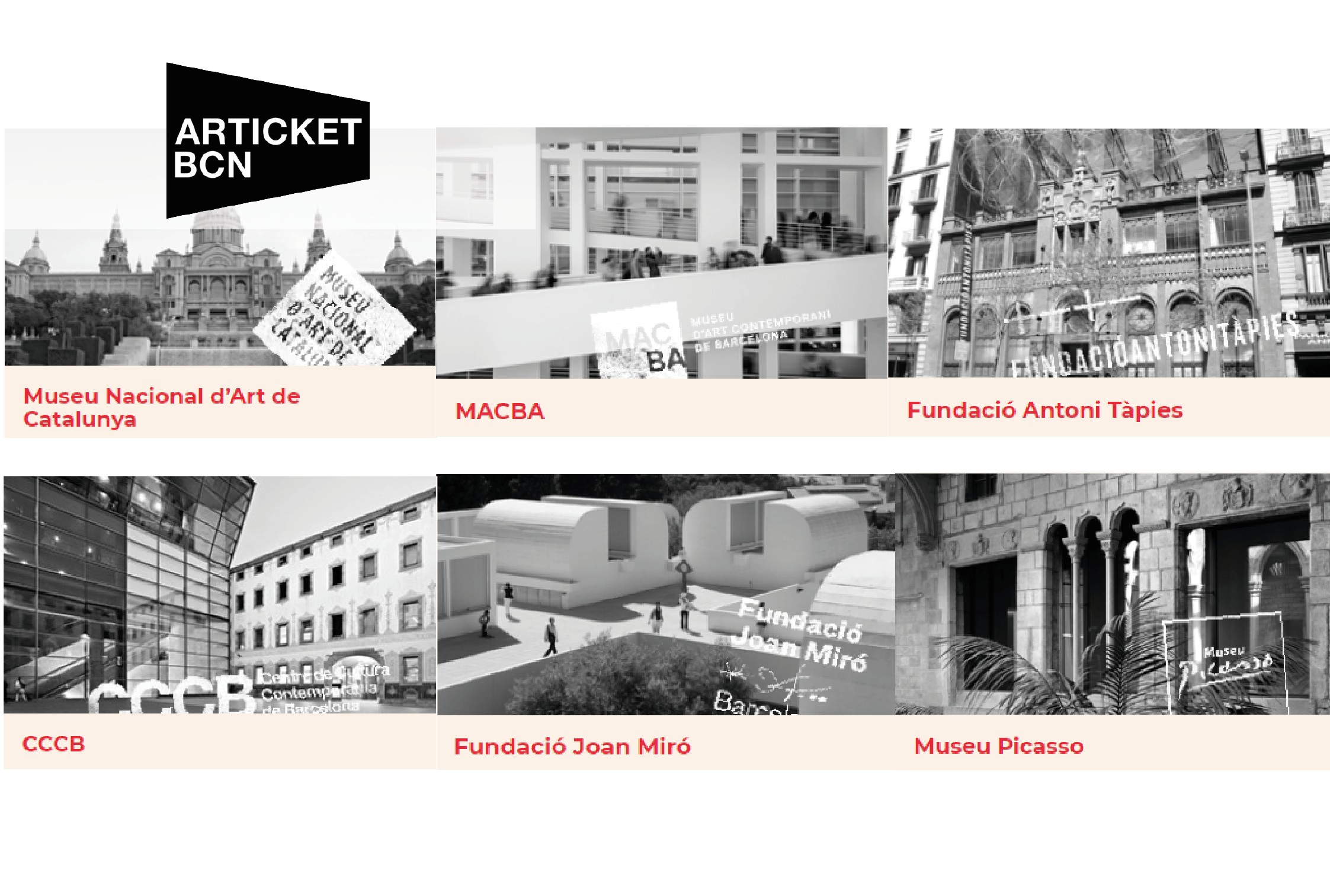 Barcelona Articket is Barcelona without queues. Buy your tickets for Barcelona Artickets and avoid queues and long waits at the entrances to the 6 main art museums of the city.