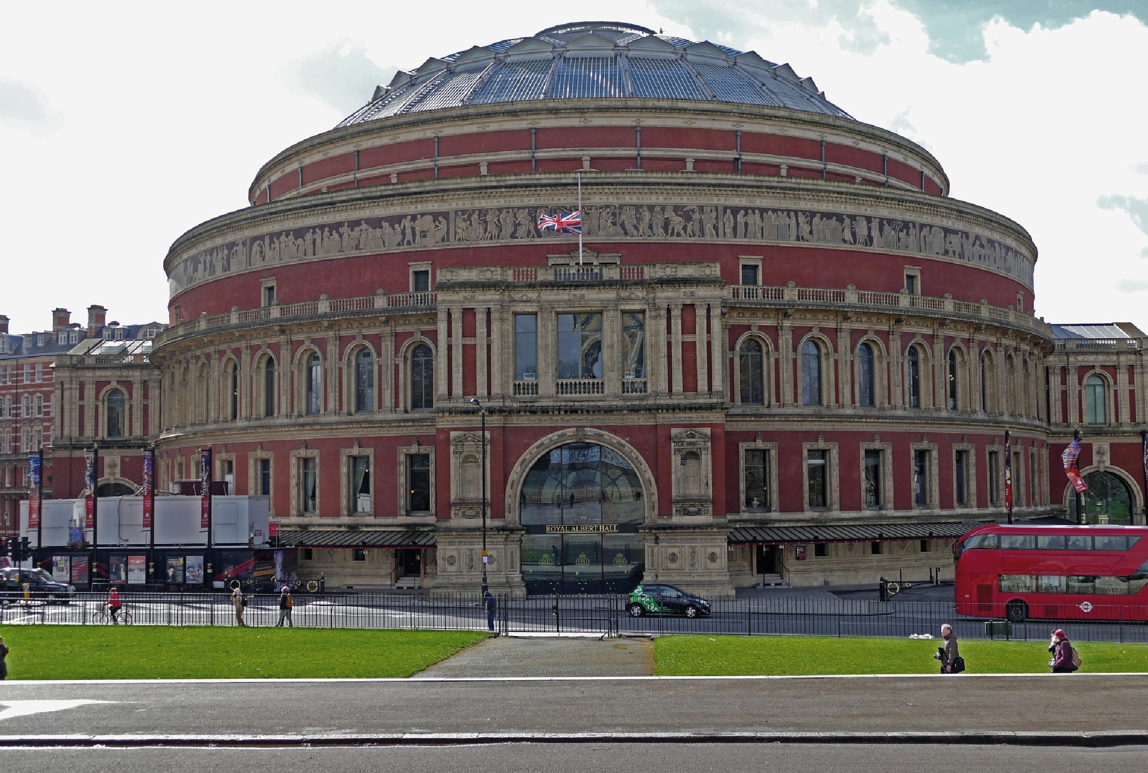 The monument was built in 1867, inspired by the ancient Roman amphitheatres. In fact, on the outside, it has a beautiful mosaic decorative frieze that surrounds the entire circumference of the theatre and represents the triumph of the arts and sciences. It was erected in memory of Prince Albert of Saxony, husband of the former Queen Victoria.